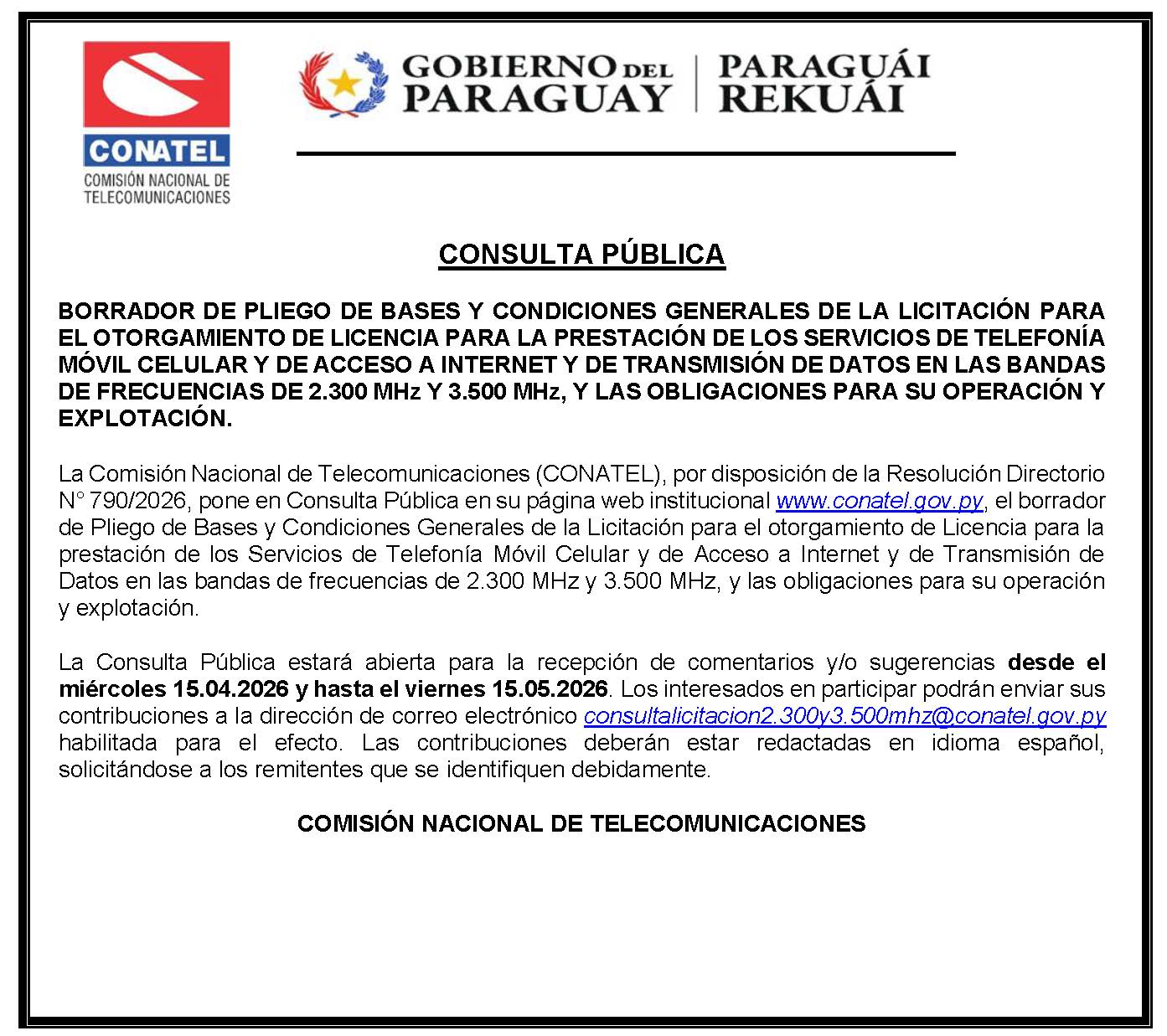 Correo electrónico: ccenter@conatel.gov.py