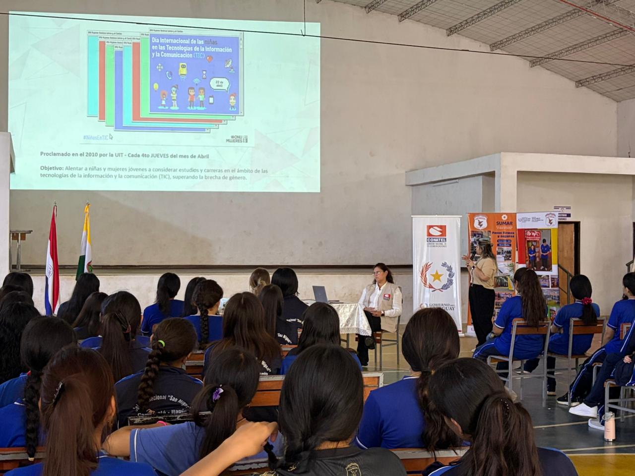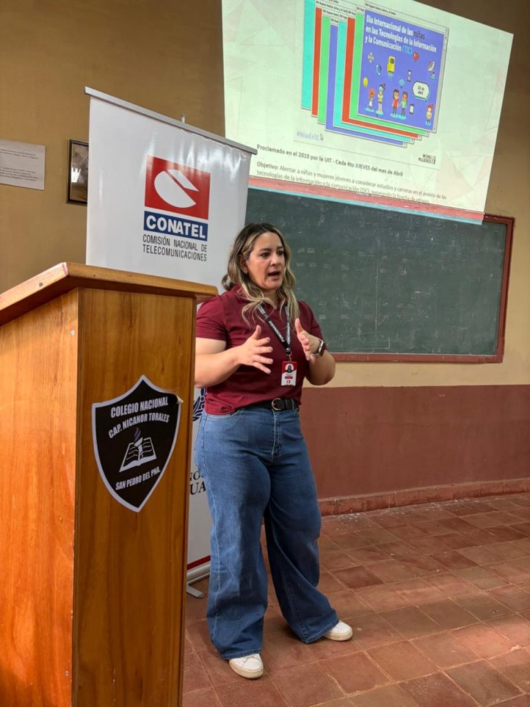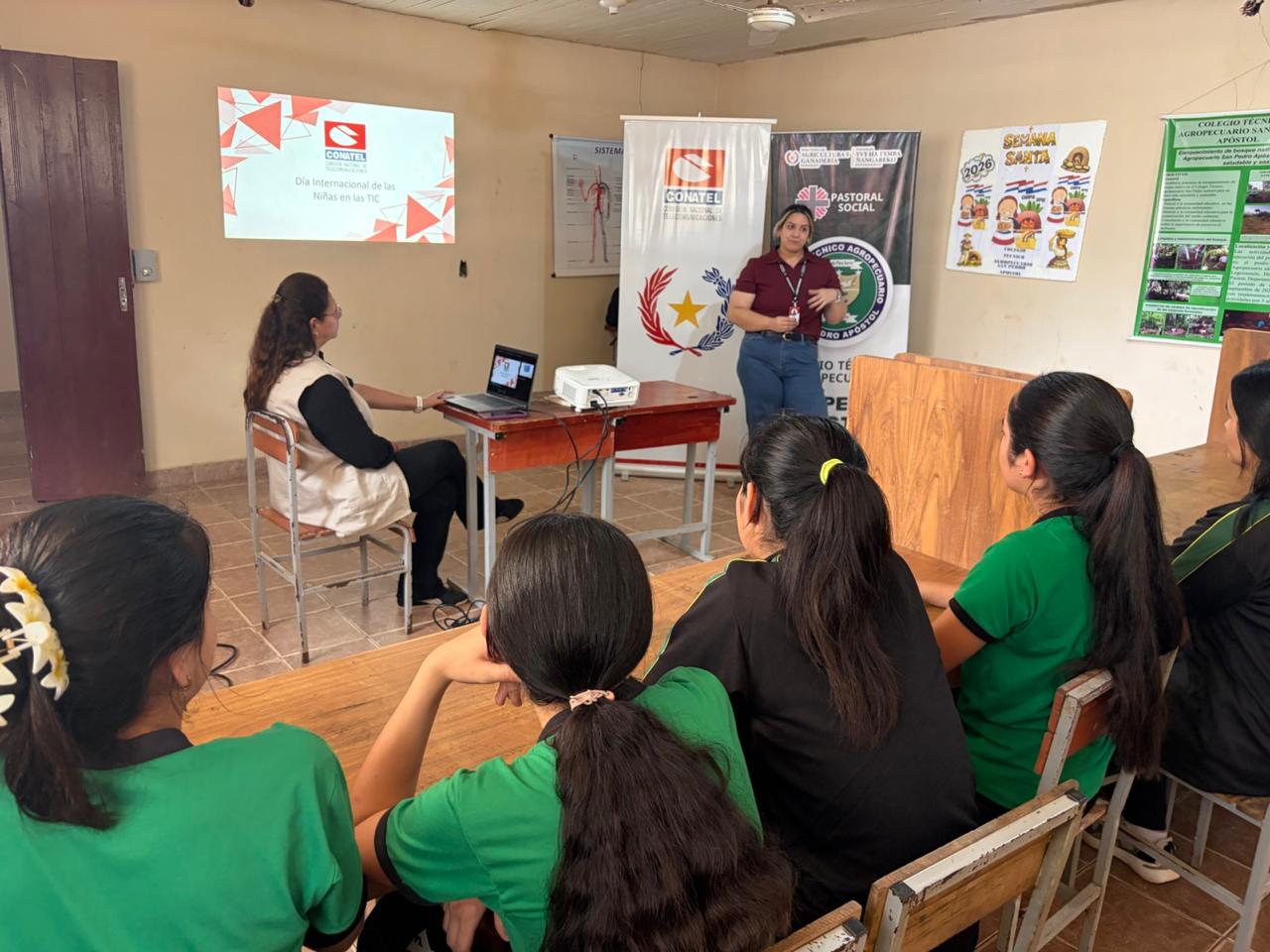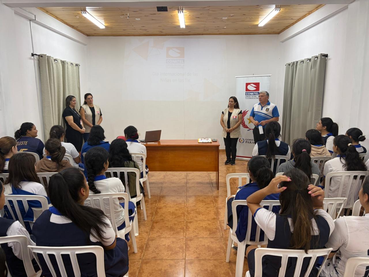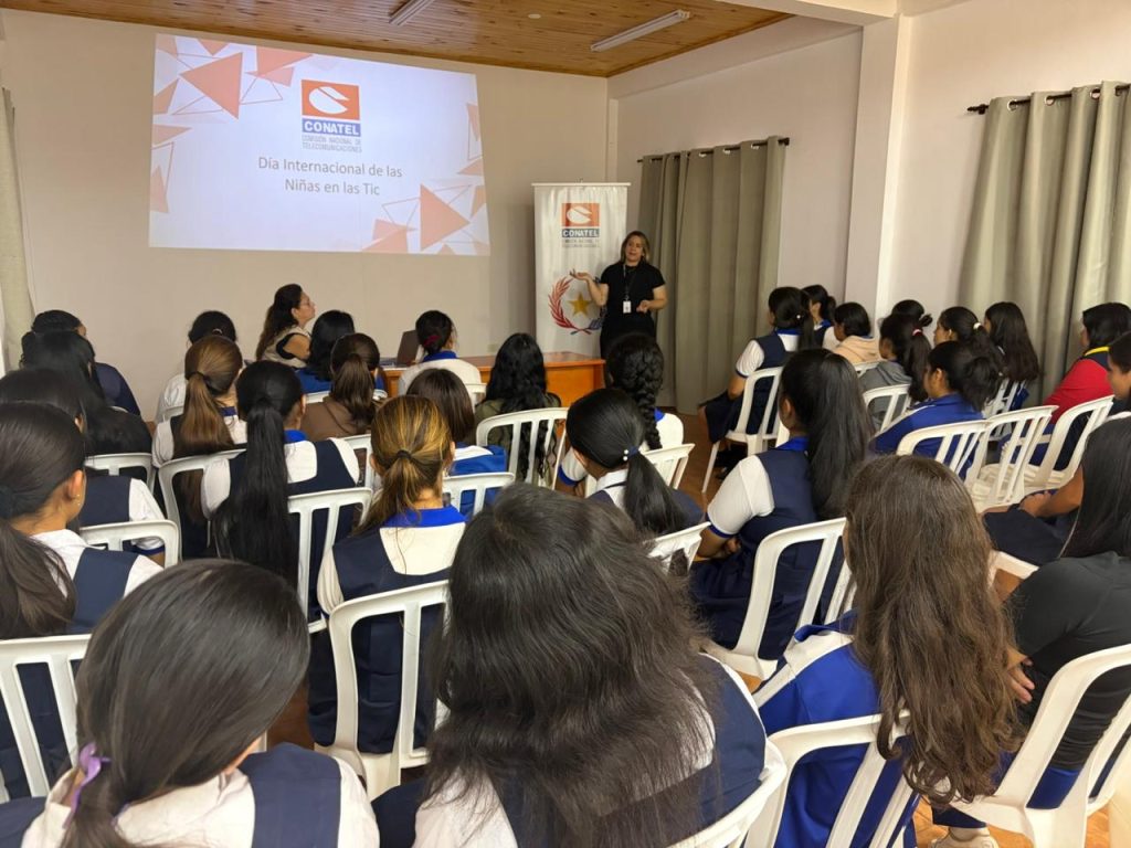 La CONATEL, a través de su “Red de Mujeres”, desarrolló su ya tradicional conversatorio en conmemoración del Día Internacional de las Niñas en las Tecnologías de la Información y la Comunicación (TIC), del 21 al 23 de abril, en siete instituciones educativas del departamento de Itapúa. La iniciativa responde a las políticas de inclusión digital impulsadas por el Gobierno del Paraguay, encabezado por el presidente Santiago Peña, orientadas a ampliar las oportunidades de formación para jóvenes en el ámbito tecnológico.
