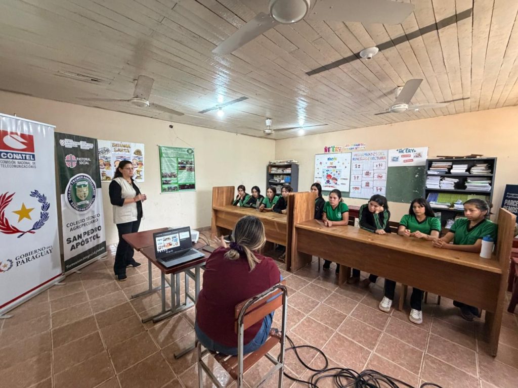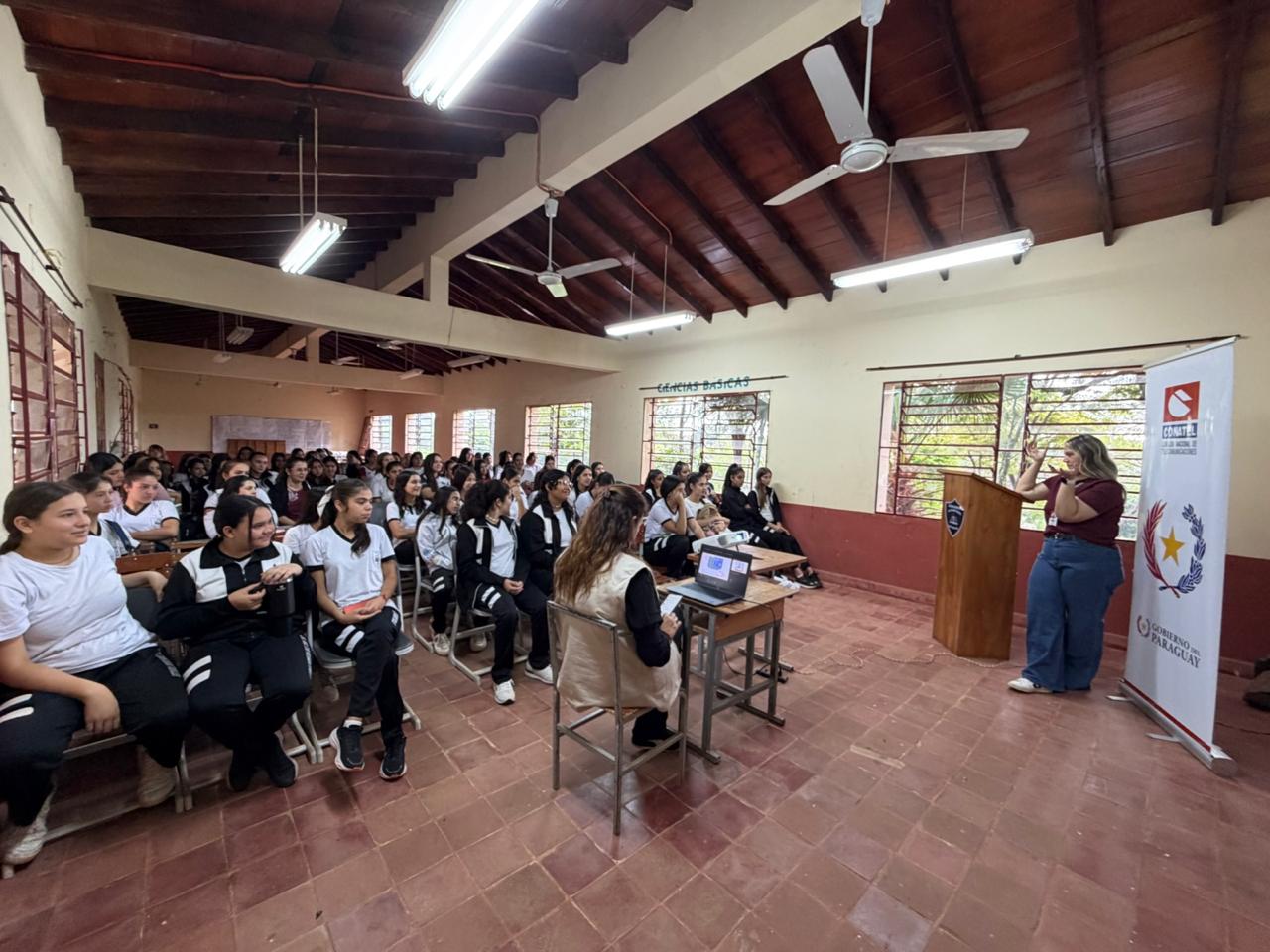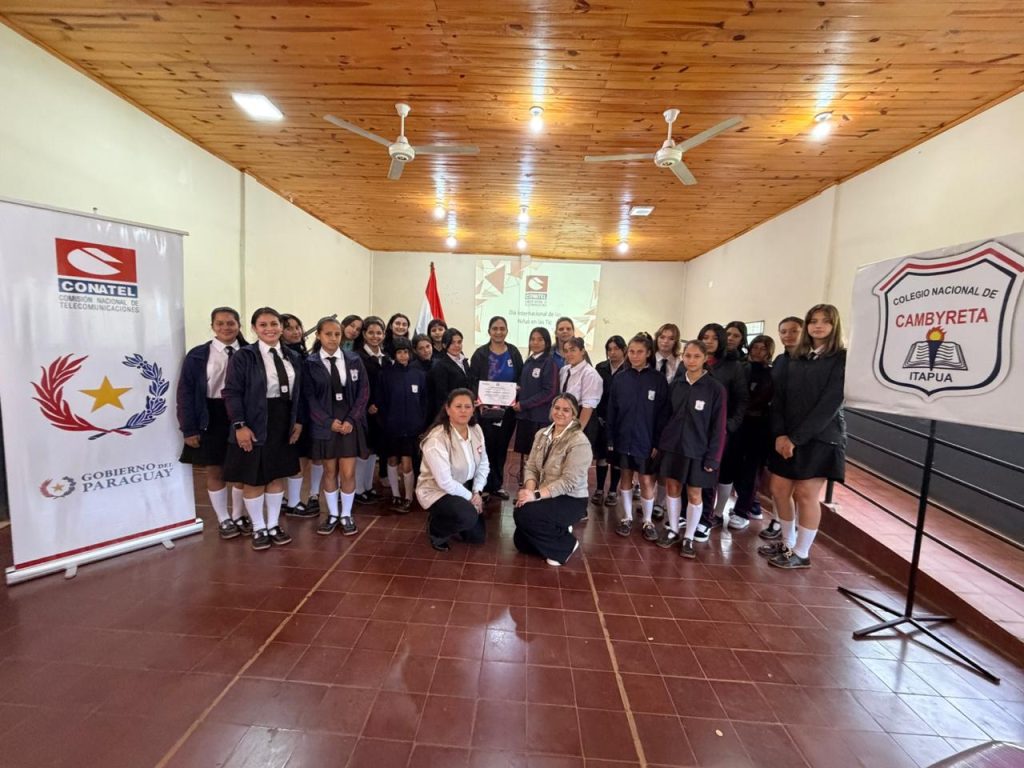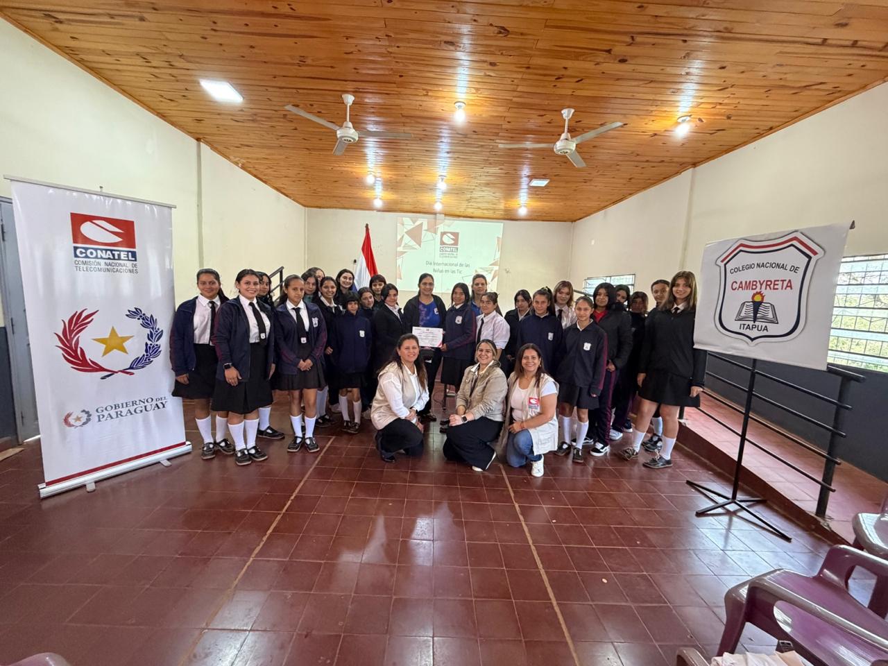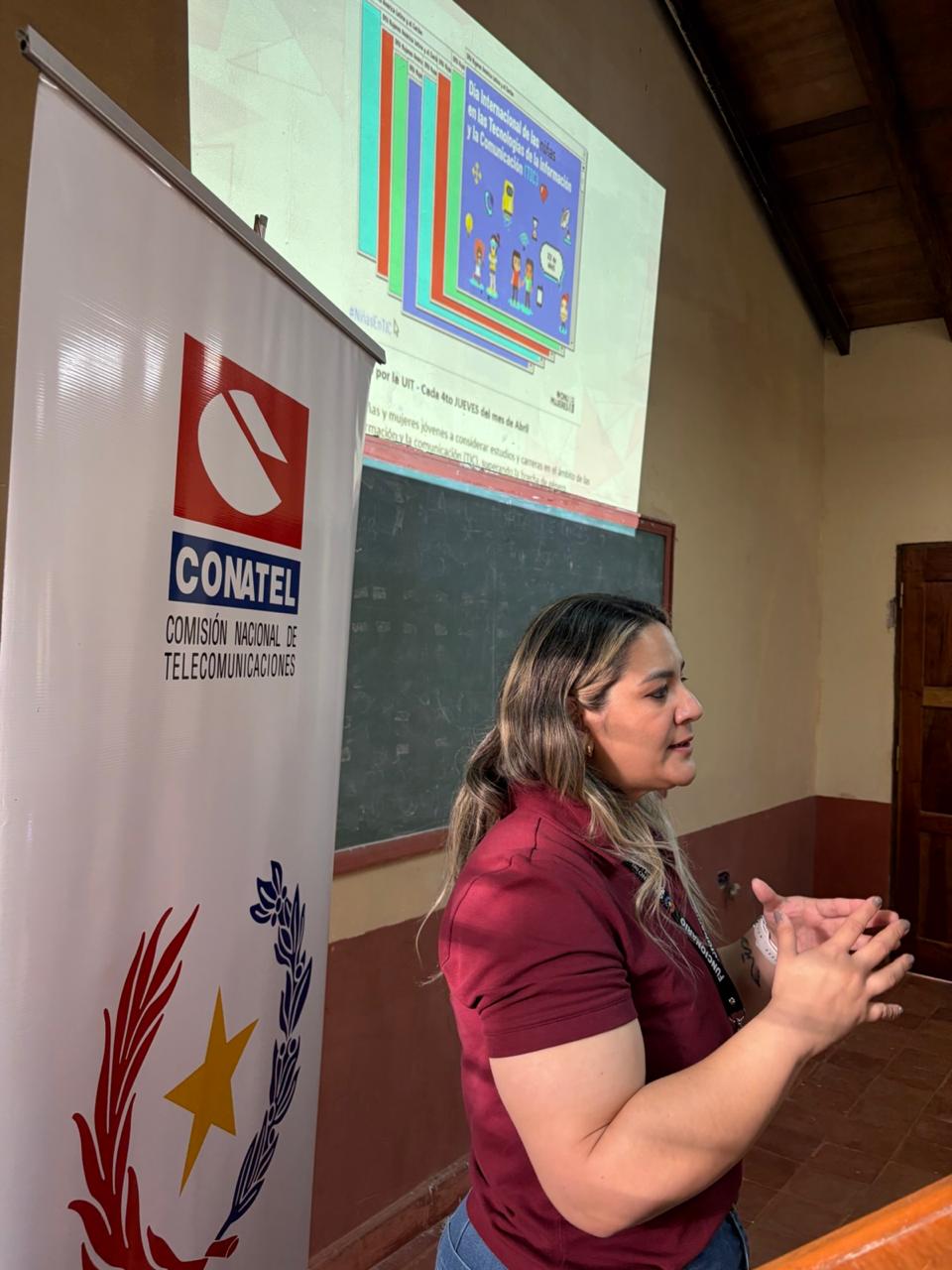 La CONATEL, a través de su “Red de Mujeres”, desarrolló su ya tradicional conversatorio en conmemoración del Día Internacional de las Niñas en las Tecnologías de la Información y la Comunicación (TIC), del 21 al 23 de abril, en siete instituciones educativas del departamento de Itapúa. La iniciativa responde a las políticas de inclusión digital impulsadas por el Gobierno del Paraguay, encabezado por el presidente Santiago Peña, orientadas a ampliar las oportunidades de formación para jóvenes en el ámbito tecnológico.